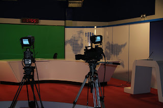 Après un accueil un peu cahotique, puisque notre interlocuteur était absent, et n'avait prévenu personne de notre venue, grace au directeur adjoint de programmes télé, nous avons eu droit à une visite guidée des locaux.